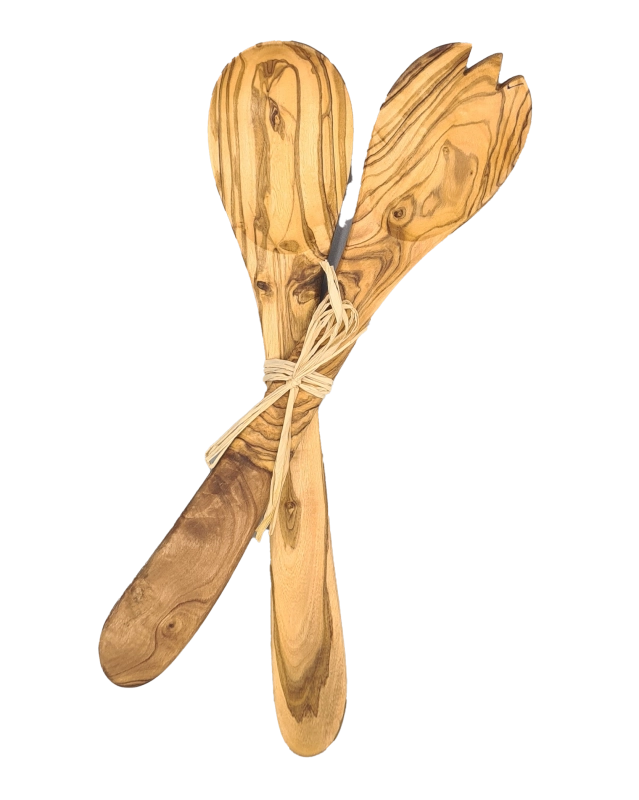 Salatbesteck aus Olivenholz.